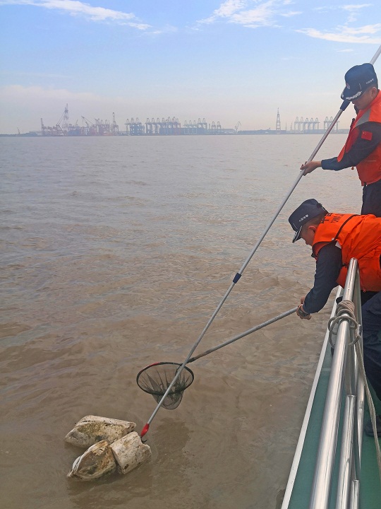 在日常轄區(qū)巡邏時,上海海警局執(zhí)法員持續(xù)發(fā)揮“海洋凈化小分隊”作用,主動為海洋“清潔”,對附近航道內及海岸堤壩上的各類垃圾進行清理。