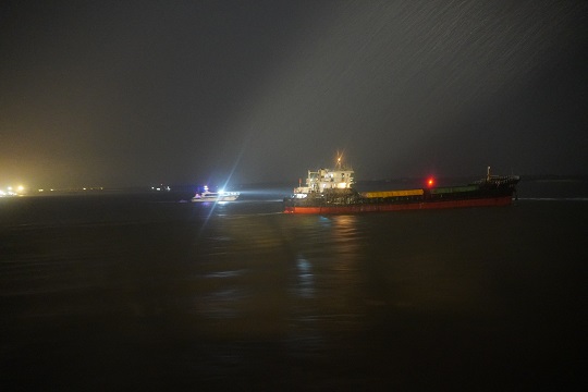 6月18日8時(shí),上海海警局執(zhí)法艇在長(zhǎng)江口南槽航道附近海域巡邏時(shí),發(fā)現(xiàn)一艘貨船使用的是篡改后的AIS,屬于“套牌船”。執(zhí)法艇靠前對(duì)其進(jìn)行喊話示警,并登臨檢查該船。經(jīng)查,該船共有6名船員,裝載牛肚等凍品約200噸,案值約2000萬(wàn)元。