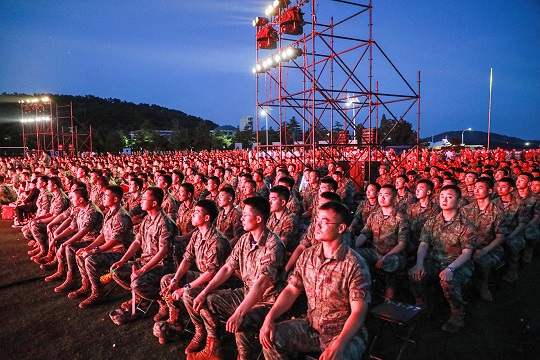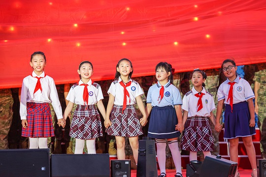 稚嫩的童音伴著雄壯的吶喊,純真的笑臉映著剛毅的眼神。希望與守護(hù)的和諧交融,深深感動(dòng)著每一名現(xiàn)場觀眾。