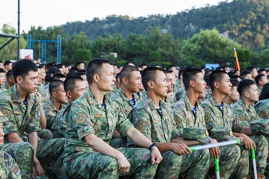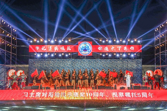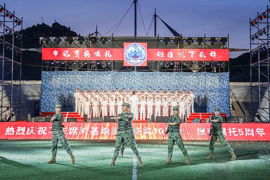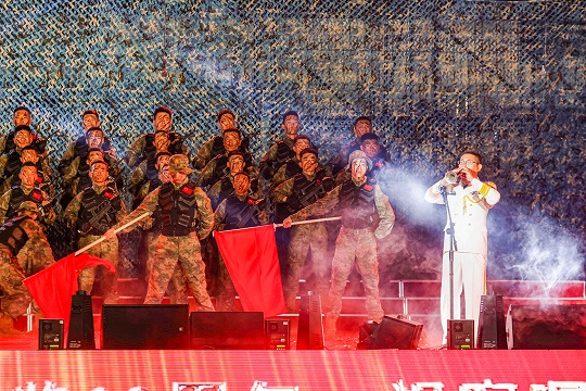 鑼鼓隊(duì)、舞蹈隊(duì)、武術(shù)隊(duì)等6支特色隊(duì)組共同唱響氣勢雄渾的《礪劍深藍(lán)》原創(chuàng)歌曲,展現(xiàn)官兵精武保障、扎根深山、向深藍(lán)的堅(jiān)定信念。