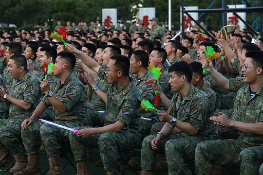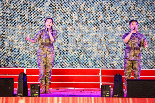 《岸訓(xùn)之歌》《壯志飛揚(yáng)》《渴望光榮》《鯨港尖兵》等,演唱中靈活加入旗語、舞蹈、捧燈等元素,讓真情流露,讓情感升華。