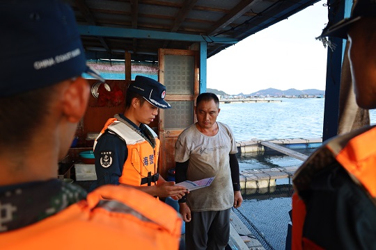 在做好海警營區(qū)和執(zhí)法艦艇防臺工作的基礎上,該局執(zhí)法員深入轄區(qū)碼頭開展安全檢查,幫助漁船民對漁排、船只加固纜繩、整理網(wǎng)具,檢查防臺防汛措施,消除各類安全隱患。巡邏艇同步出海巡查,通過廣播喊話、發(fā)放宣傳冊等方式進行防臺宣傳,緊急勸返轄區(qū)漁民群眾撤離到陸地。