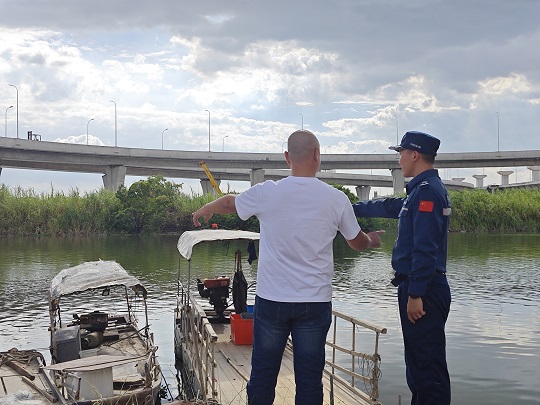 圖為執(zhí)法員勸離船只。