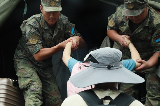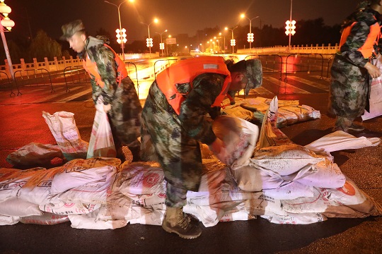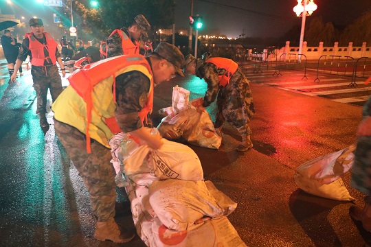 7月31日上午,北京市昌平區(qū)北沙河水位暴漲,南側(cè)大堤出現(xiàn)決口,上千名群眾被困。中部戰(zhàn)區(qū)空軍某部啟動應(yīng)急預案,組織出動10余臺車輛,攜帶救援物資奔赴受災(zāi)地區(qū)。到達現(xiàn)場后,官兵裝填沙袋、在水中搭人墻減緩水流,同時迅速開展排查搜救,轉(zhuǎn)移受災(zāi)群眾。通過與地方政府密切配合,排查受災(zāi)居民數(shù)百戶,轉(zhuǎn)運群眾近400人。