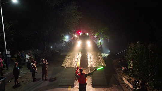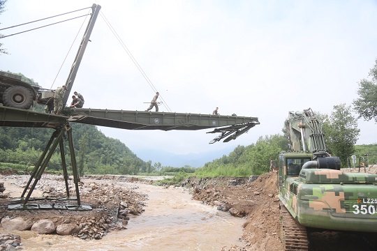 “在災(zāi)區(qū)百姓的滿懷期望中架設(shè),一次順利成功是我們唯一的選擇?!?8分鐘后,一座重型支援橋成功將兩岸連通。