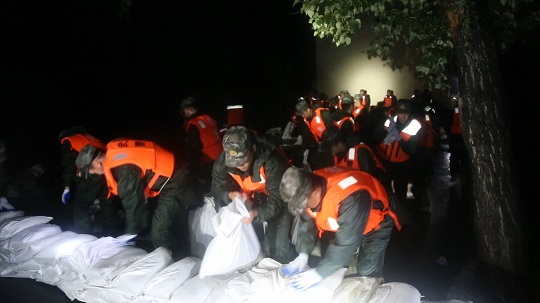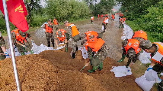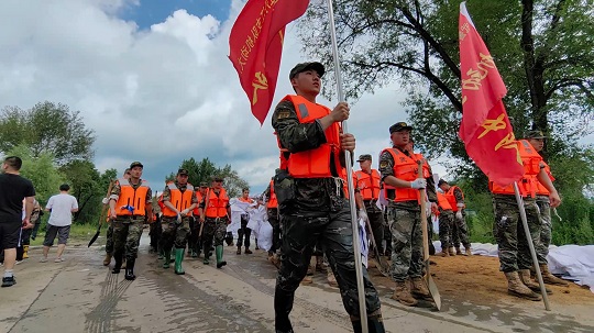 連日來,黑龍江省牡丹江市受連續(xù)降雨疊加上游洪水過境影響多地出現(xiàn)險情。鏡泊湖水庫大壩出現(xiàn)溢流,洪水危及水庫東側(cè)的瀑布村。牡丹江市污水處理廠東北側(cè)江水水位上漲,洪水逼近公路,即將倒灌進(jìn)廠區(qū),并伴有管涌出現(xiàn),周圍居民生命財產(chǎn)安全受到嚴(yán)重威脅。武警黑龍江總隊牡丹江支隊兩百余名官兵接到命令后,迅即出動前往抗洪一線。