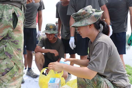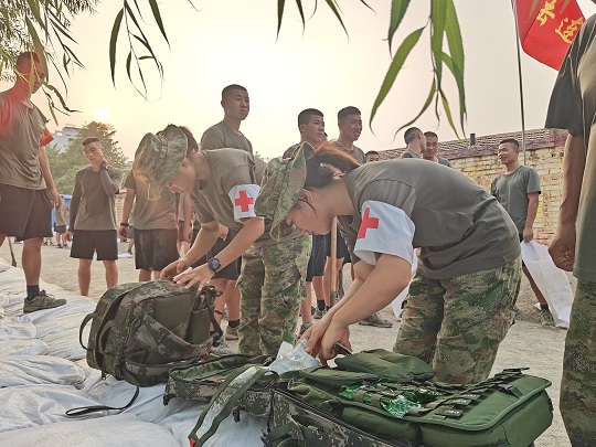 耿穎慧到達(dá)任務(wù)區(qū)后,第一時(shí)間投入工作。快速搭建旅救護(hù)所,歸納整理藥品,參加堤壩巡診……8月8日,迎戰(zhàn)洪峰前,她主動(dòng)加入到堤壩加固任務(wù)中。裝沙、扎口、搬運(yùn)、筑壩……哪里需要哪里就有她的身影。汗水打濕衣襟,鍬鎬磨出血泡。休息調(diào)整期間,參加過維和任務(wù)的耿穎慧來到受災(zāi)群眾中,為大家巡診擦藥。
