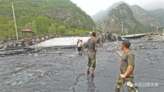 “駐地河堤決口,多個居民區(qū)被大水漫灌……”接到任務(wù)命令,該部迅速成立黨員先鋒隊(duì),100余名業(yè)務(wù)骨干攜帶防洪工具和搶修器材火速馳援昌平區(qū)某受災(zāi)地。