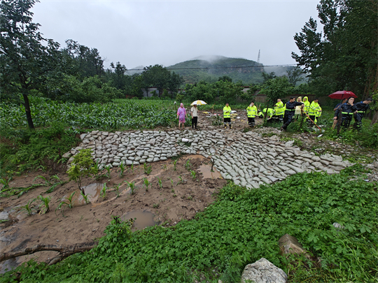聽令再出發(fā)!官兵們沿著濕滑的蜿蜒山路向前行軍,想盡辦法越過被山體塌方阻擋的去路,一個(gè)多小時(shí)后成功抵達(dá)。到達(dá)后,堤壩低洼部分已有洪水漫灌,沖垮部分護(hù)欄。