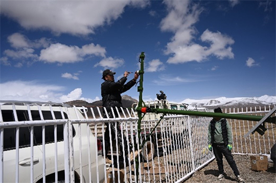 為完成“羌塘國家級自然保護(hù)區(qū)生態(tài)氣象監(jiān)測系統(tǒng)”項目建設(shè),航天新氣象公司的工作人員歷時兩個月,行駛兩萬余公里,建設(shè)5套生態(tài)氣象觀測站和1套高原近地層通量觀測站,以航天科技保護(hù)這片高原凈土。