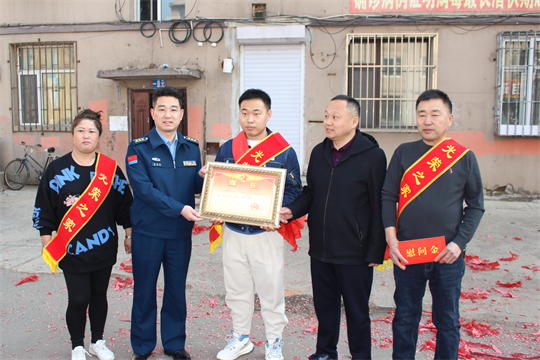 圖為周昆訓(xùn)(生前)為舒蘭籍立功官兵家屬送喜報(bào)。吉林省軍區(qū)政治工作局供圖
