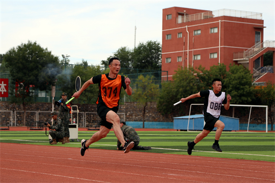 “各就位,預(yù)備,嘭……”伴隨著發(fā)令槍響,4×400米接力賽開始。參賽官兵猶如離弦之箭迅速沖出起跑線,第一棒官兵低頭猛沖,接棒官兵焦急回望,觀賽官兵吶喊助威,現(xiàn)場氛圍緊張熱烈。與此同時(shí),各競賽課目相繼展開,20×60米考驗(yàn)團(tuán)隊(duì)協(xié)作和速度;徒手、負(fù)重組合考驗(yàn)爆發(fā)力和協(xié)調(diào)力;器械課目考驗(yàn)技能技巧和官兵耐力……