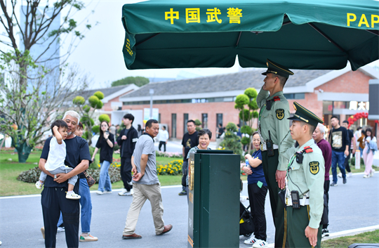 武警合肥支隊(duì)精心選派執(zhí)勤官兵,采取定點(diǎn)警戒與武裝巡邏相結(jié)合的方式維護(hù)現(xiàn)場(chǎng)秩序,熱情主動(dòng)為游客提供便民服務(wù),成為園博會(huì)上一道靚麗的風(fēng)景線。