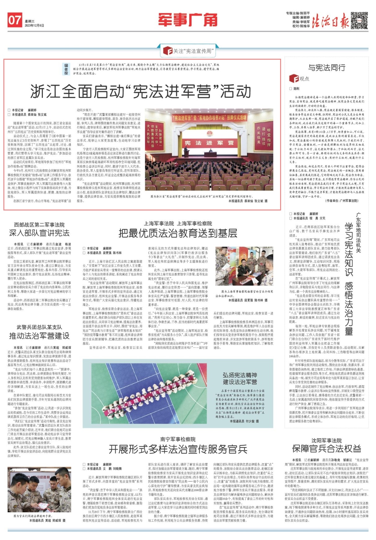 隨著第十個(gè)國家憲法日的到來,浙江省全面啟動(dòng)“憲法進(jìn)軍營”活動(dòng)。12月1日上午,啟動(dòng)儀式在杭州市“五四憲法”歷史資料陳列館舉行。