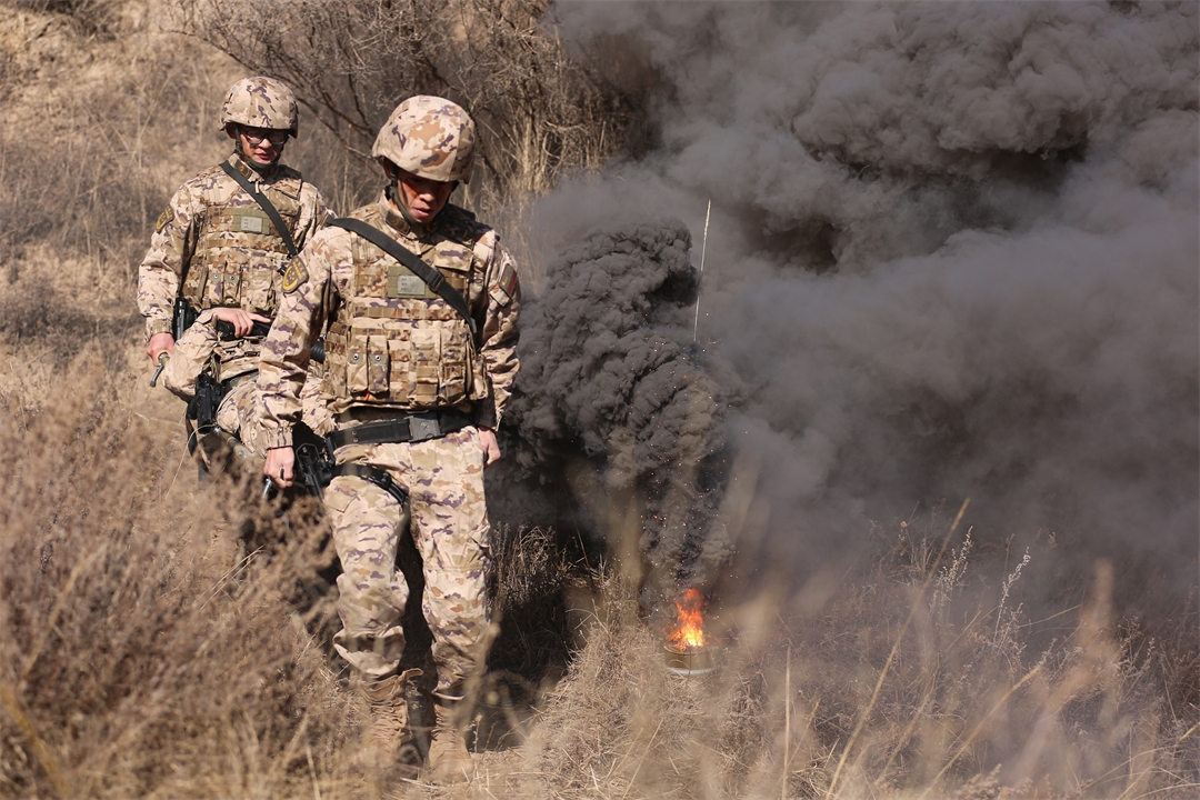 圖為官兵隱蔽接近任務(wù)區(qū)域。