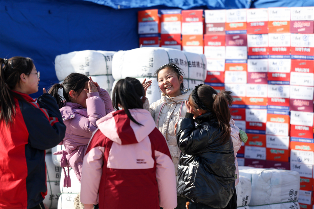 圖為12月21日,在甘肅省臨夏州石山縣劉集鄉(xiāng)陽(yáng)屲村安置點(diǎn),小朋友們?cè)趶V場(chǎng)上開(kāi)心玩耍。