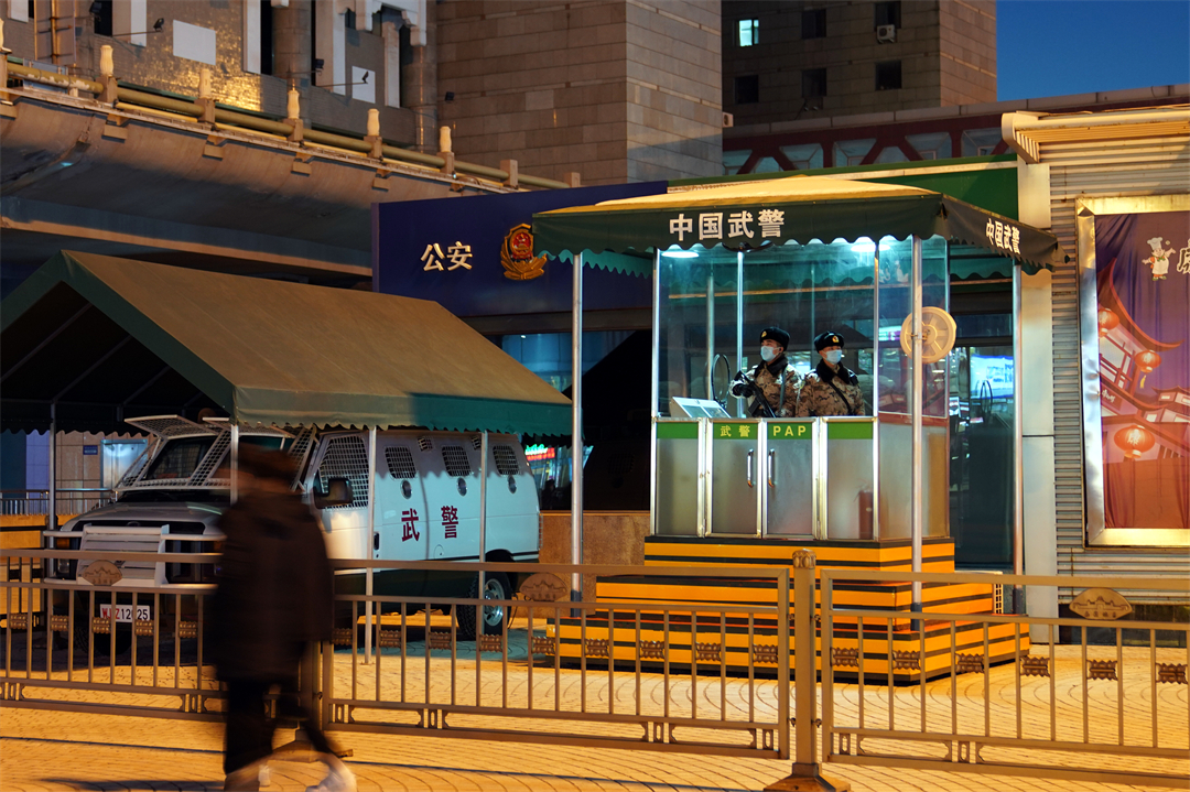 圖為武警星夜堅守,保障群眾平安出行。