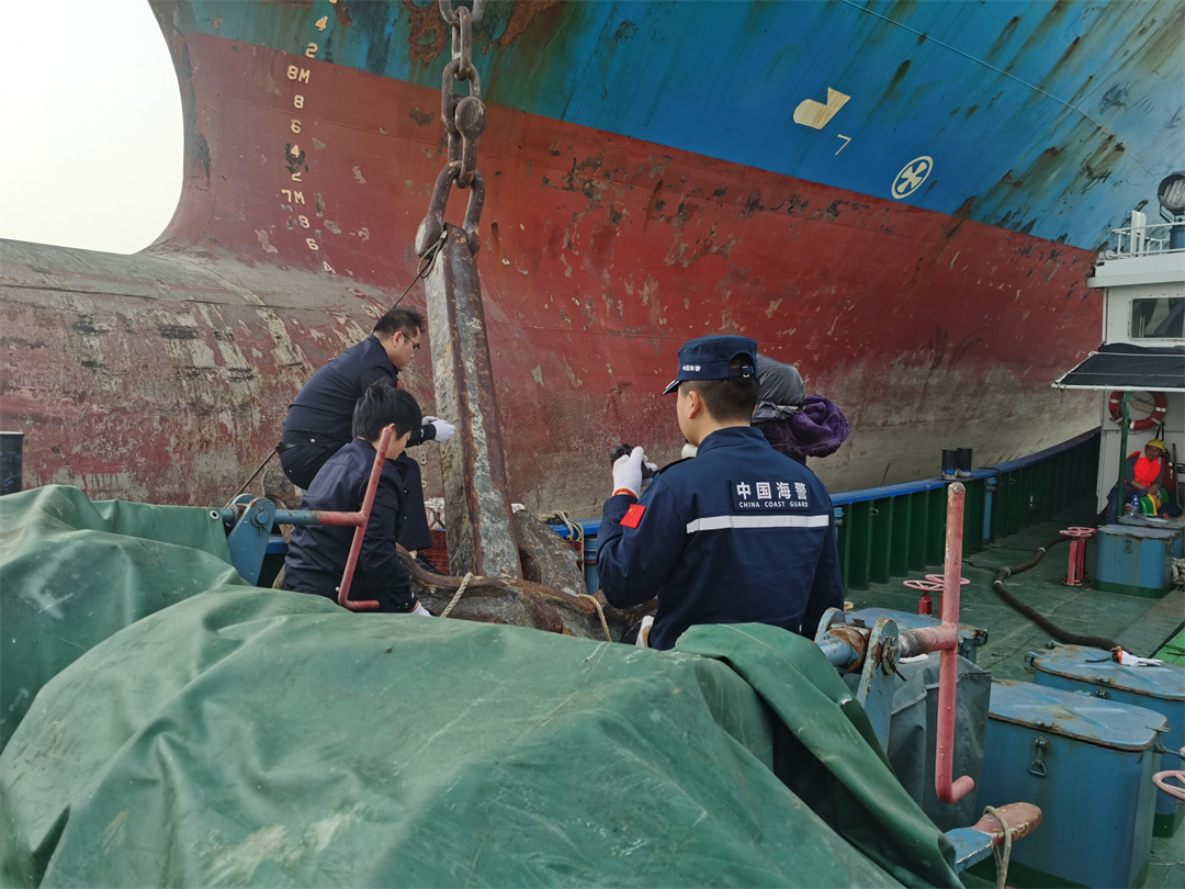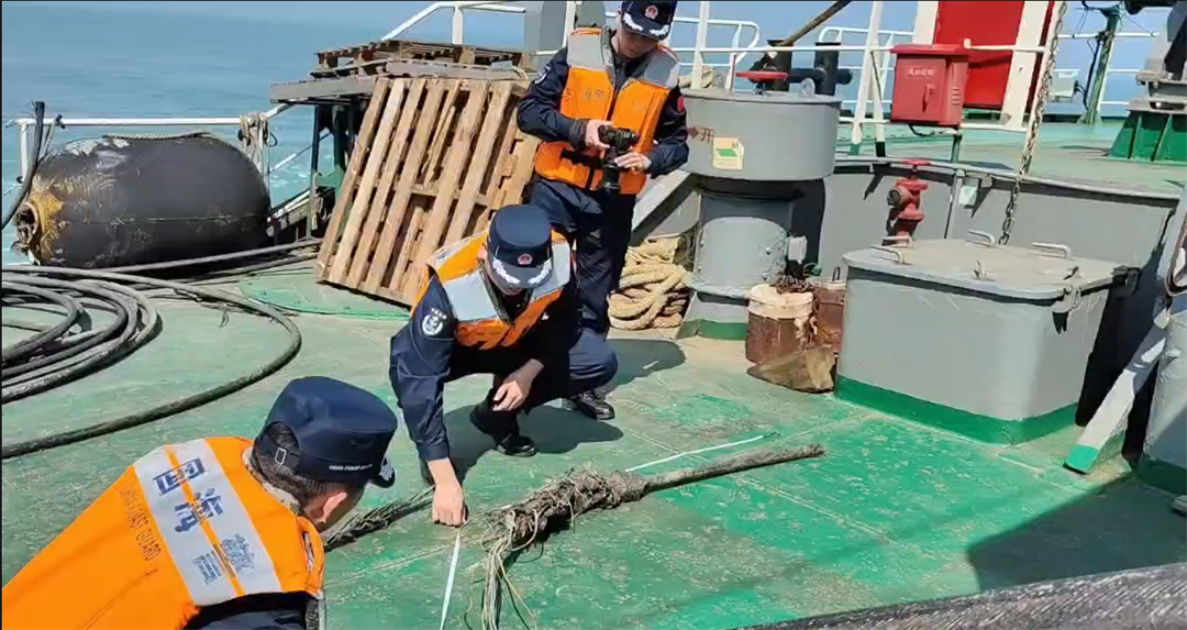 圖為廣東海警局與海事局工作人員對海纜案涉案船舶錨鏈進行檢查。