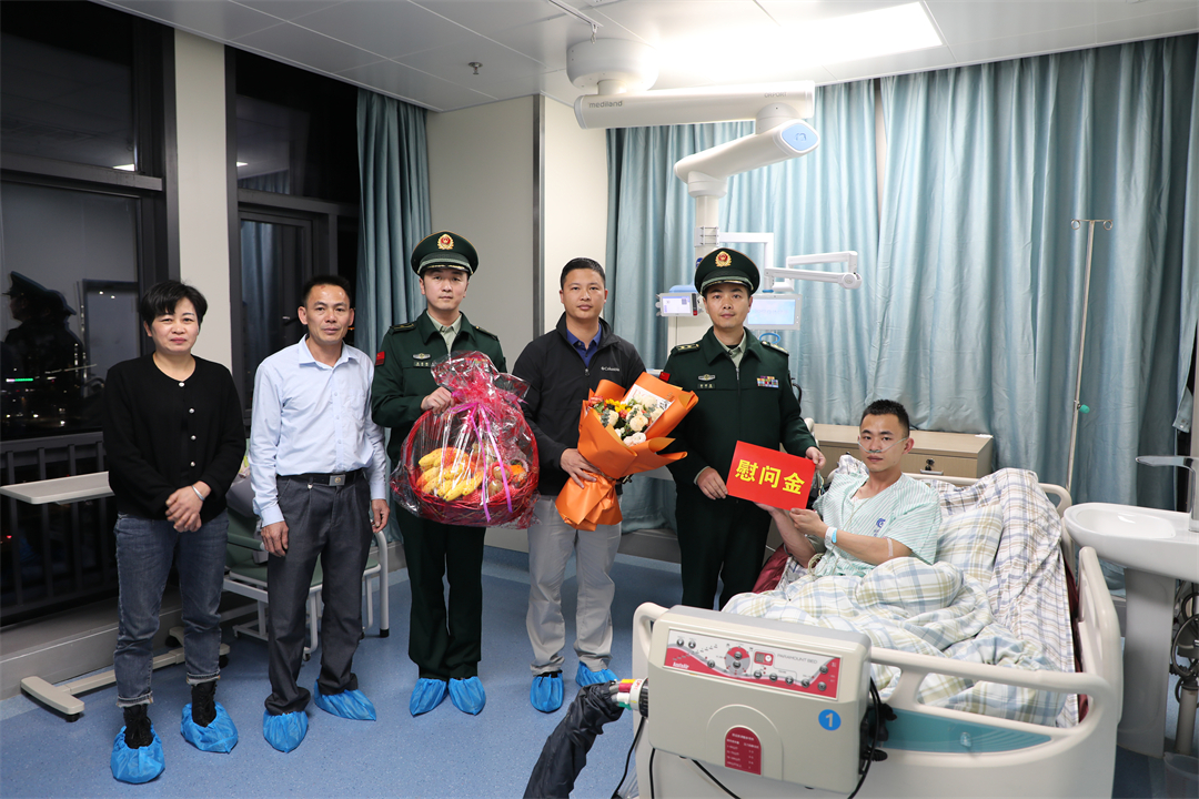 圖為武警廣東總隊(duì)、武警江門支隊(duì)看望慰問(wèn)陳凱松。