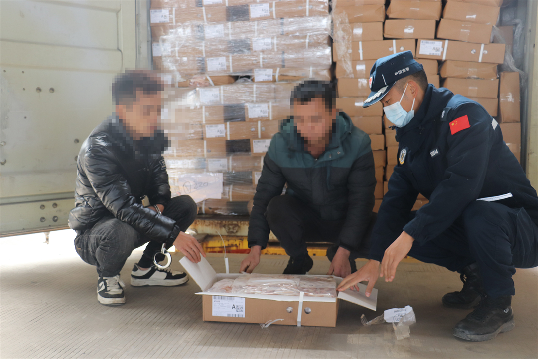 圖為嫌疑人指認(rèn)走私凍品現(xiàn)場。