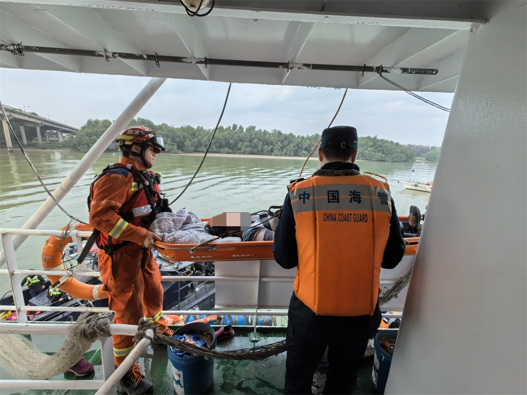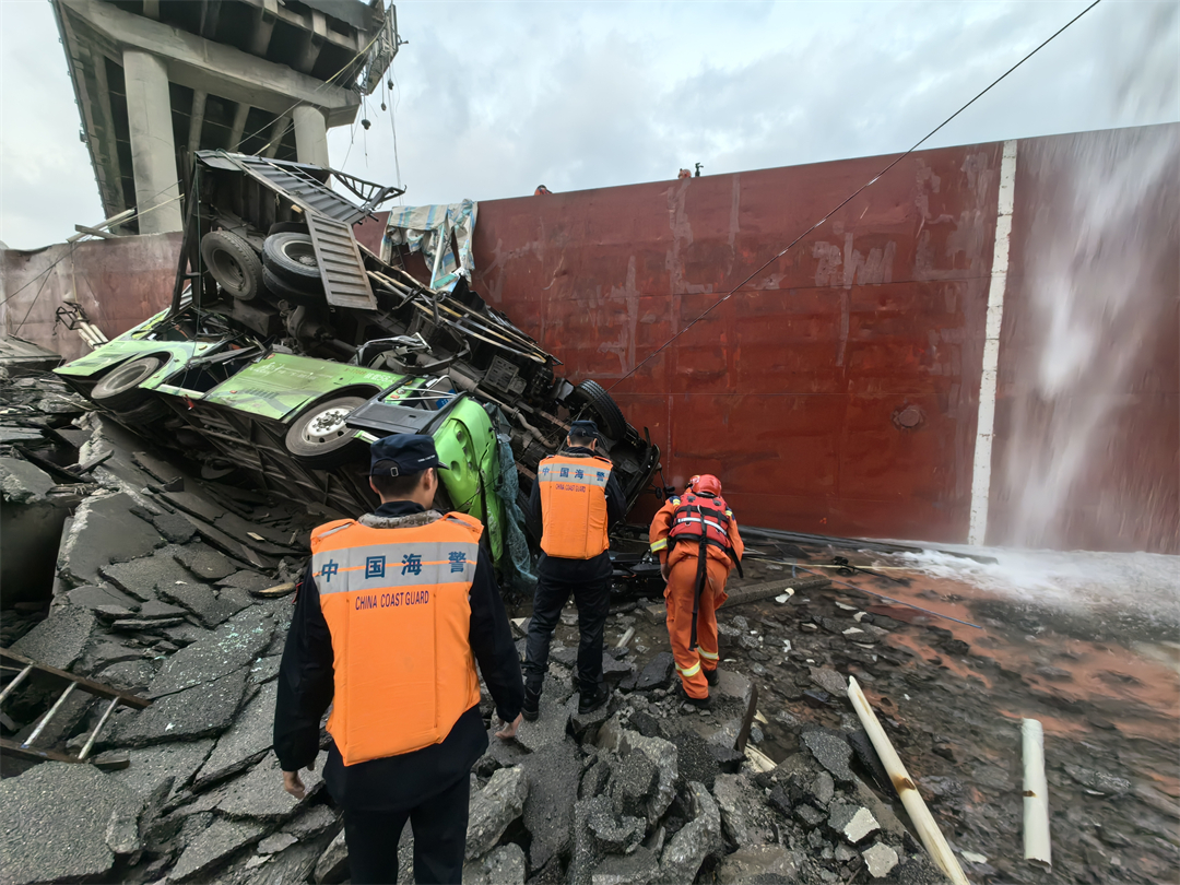 2月22日6時許,廣州海警局接報警,南沙瀝心沙大橋被撞,橋體斷裂,橋上有車輛落水,情況危急請求救援。接警后,廣州海警局立即啟動海上應(yīng)急救援預(yù)案,指派21523、21141等執(zhí)法艇第一時間到達事發(fā)海域,聯(lián)合消防、公安、海事等單位開展緊急救援。