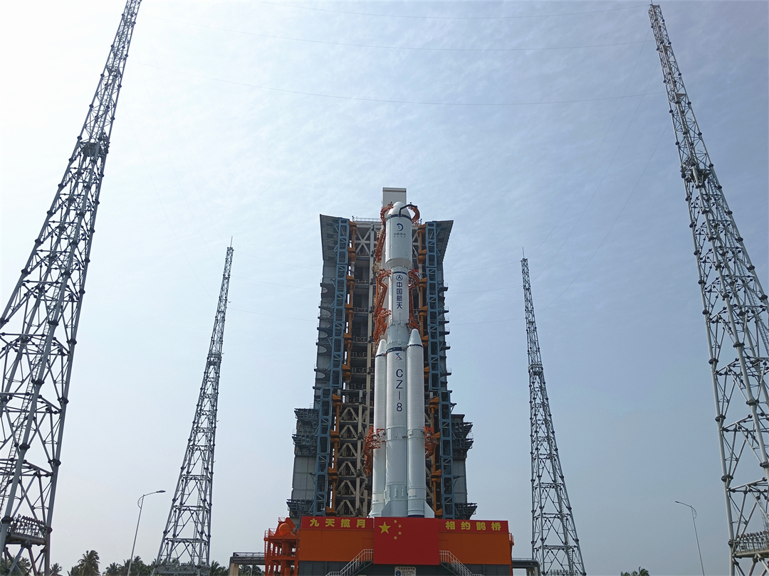 南海之濱,海天之間,高大挺拔的長(zhǎng)征八號(hào)遙三運(yùn)載火箭傲然矗立、劍指蒼穹,鵲橋二號(hào)中繼星發(fā)射在即。