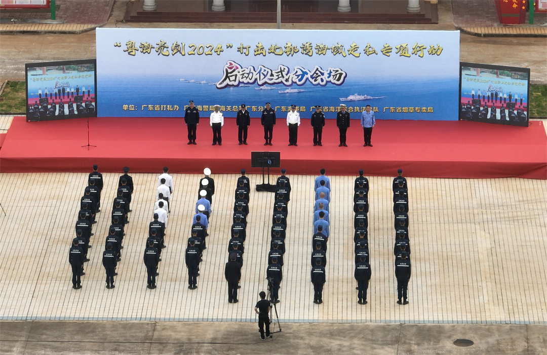 為強(qiáng)化轄區(qū)治安管控,縱深嚴(yán)打走私違法犯罪,維護(hù)國(guó)家政治經(jīng)濟(jì)和海上安全穩(wěn)定,3月27日,廣東海警局在廣東省深圳市舉行“粵海亮劍2024”打擊海上走私專項(xiàng)行動(dòng)啟動(dòng)儀式,在湛江和汕頭分別設(shè)置分會(huì)場(chǎng)。儀式還邀請(qǐng)了廣東省打私辦、海關(guān)總署廣東分署、廣東海事局、廣東省海洋綜合執(zhí)法總隊(duì)、廣東省煙草專賣局及地市等相關(guān)職能單位出席儀式。