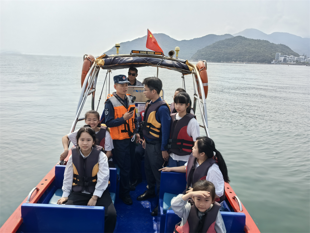 圖為執(zhí)法員向海上游客科普國家安全相關(guān)知識。
