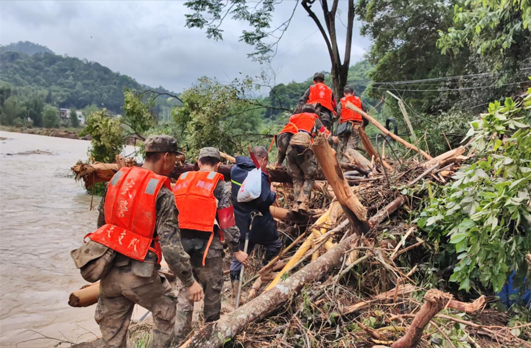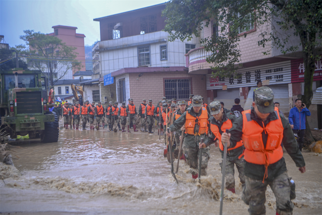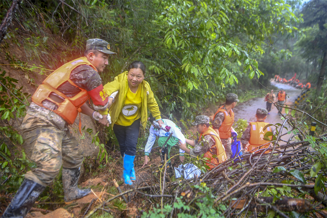 “前面塌方,大家把鞋帶系緊一點(diǎn),不然陷到泥里拔不出來。”降雨仍在繼續(xù),洪水還未退去。進(jìn)山不到200米,偵察股股長王闖就扯著嗓子喊道,塌方的泥土被雨水沖刷得像一團(tuán)團(tuán)“糨糊”,一腳踩下去就能沒過大腿根部。