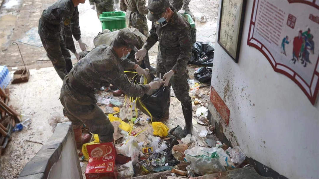 河邊的公路坍塌了近50米,官兵只能繞道山林中繼續(xù)前行,步行2分鐘就能通過的路程,卻因道路塌方繞行了10分鐘。只見被洪水淹過的房屋一樓已被覆蓋了一層近10厘米的淤泥,門口“好日子天天開心,美生活年年如意”橫幅被暴雨沖刷得破爛不堪,正在清掃淤泥的村民看見武警官兵顯得很興奮:“你們來了,我們懸著的心就放下來了,我相信日子會(huì)越來越好?!?/p>