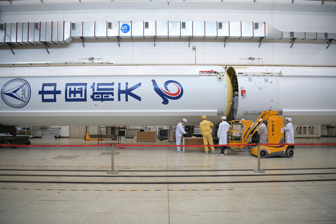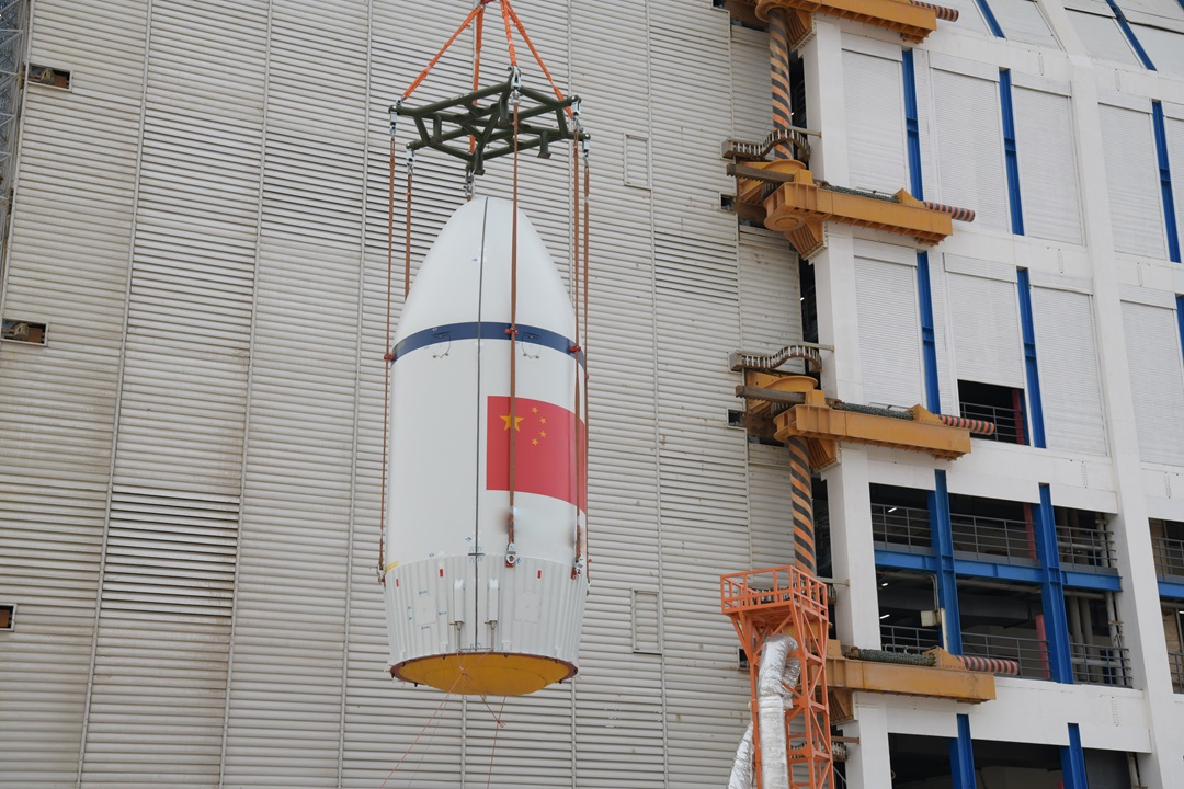圖為總裝人員進行一級箭體對接。