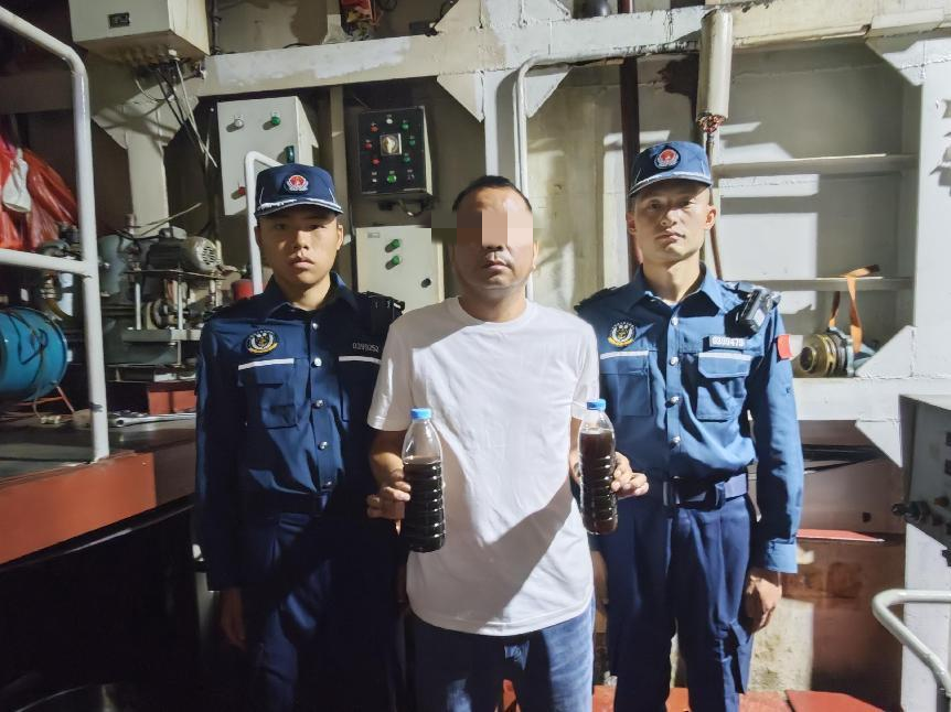 5月6日,廣東海警局接通報(bào)稱,在惠州海域發(fā)現(xiàn)一艘非法使用“紅油”貨輪即將進(jìn)入海域轄區(qū)。該局迅速派遣執(zhí)法艇查緝,并于當(dāng)日15時(shí)30分許在三門島附近海域?qū)⑵浣赝?。?jīng)查,船上共6人,海警執(zhí)法員在該船油柜及主機(jī)處均發(fā)現(xiàn)疑似“紅油”燃料油,該船船員承認(rèn)使用并存儲(chǔ)“紅油”約3噸,且無(wú)法提供相關(guān)合法手續(xù)和憑證。
