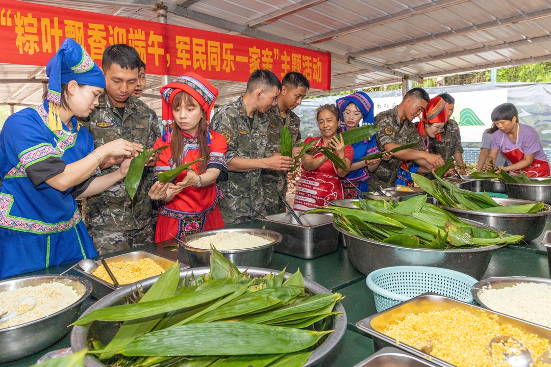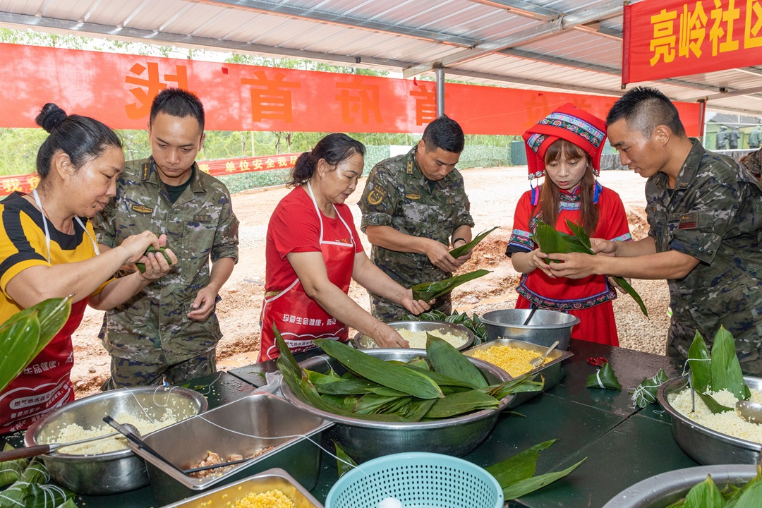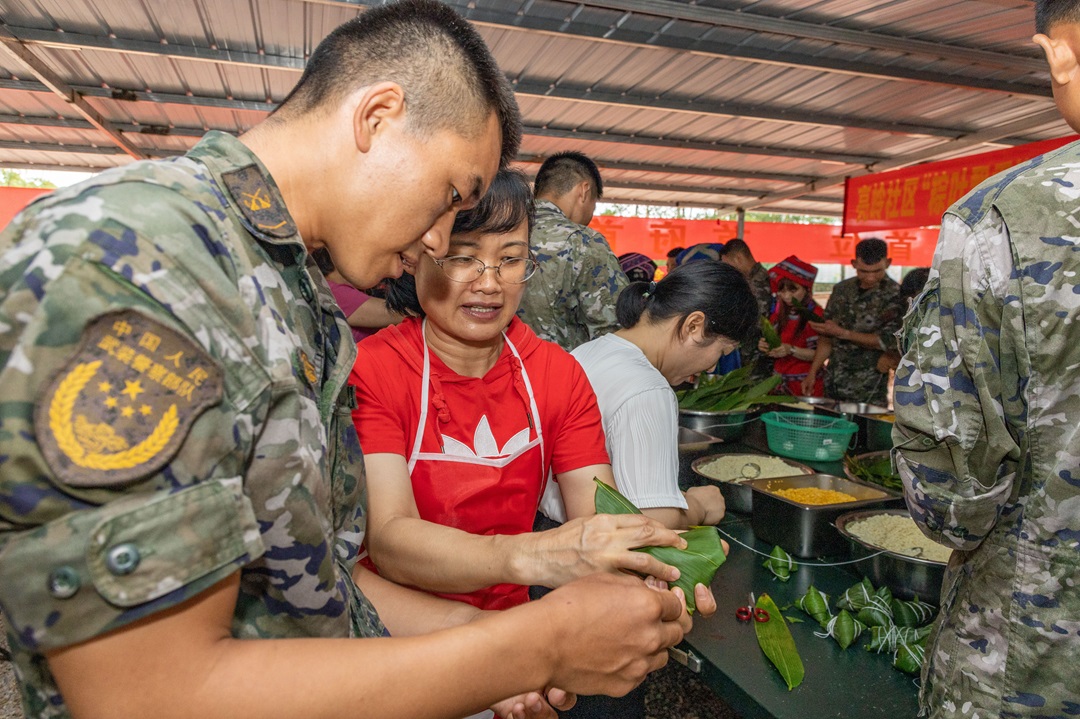 端午佳節(jié)到來(lái)之際,武警廣西總隊(duì)南寧支隊(duì)駐地群眾走進(jìn)軍營(yíng),和官兵們一起包粽子,讓官兵在第二故鄉(xiāng)感受到親情的溫暖。