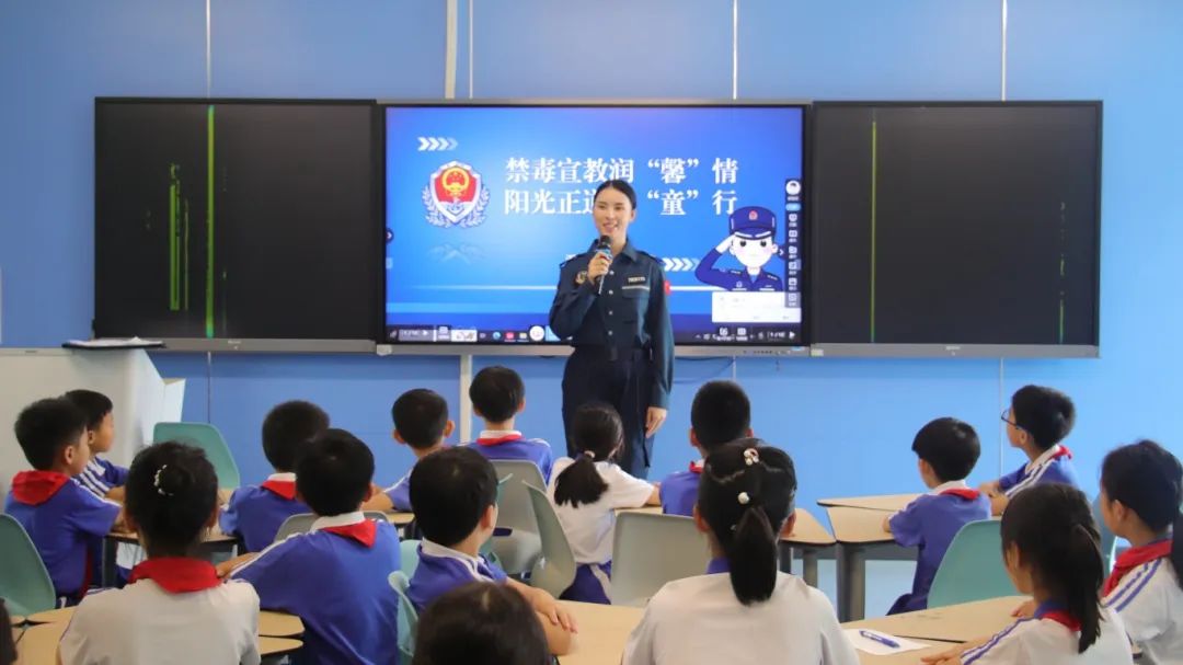 圖為6月17日,深圳海警局在深圳蓮南小學(xué)舉行禁毒宣講進(jìn)校園活動(dòng),執(zhí)法員正在給同學(xué)們講解禁毒知識(shí)。