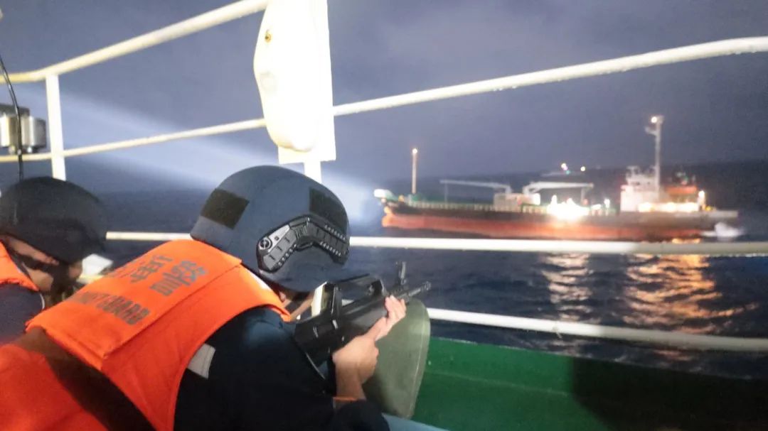 圖為今年3月,福建海警局破獲“2024.3.15”特大走私毒品案,海警執(zhí)法員鎖定運(yùn)毒船。