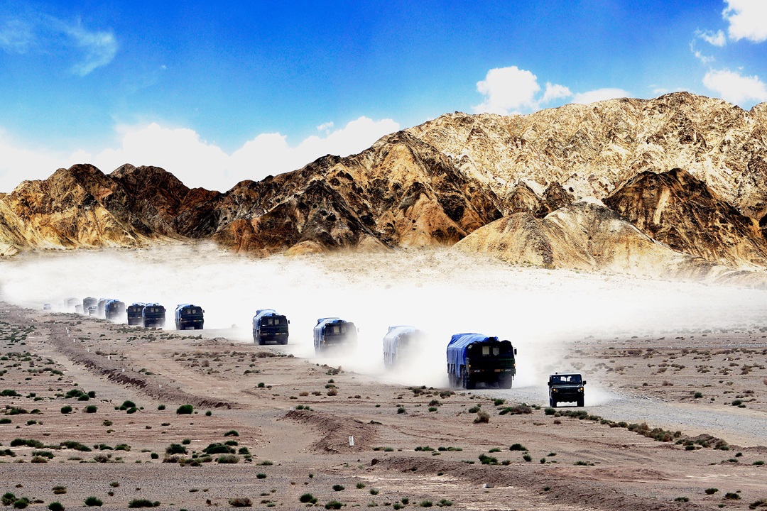 圖為火箭軍某導(dǎo)彈旅在大漠深處開展實戰(zhàn)演練。