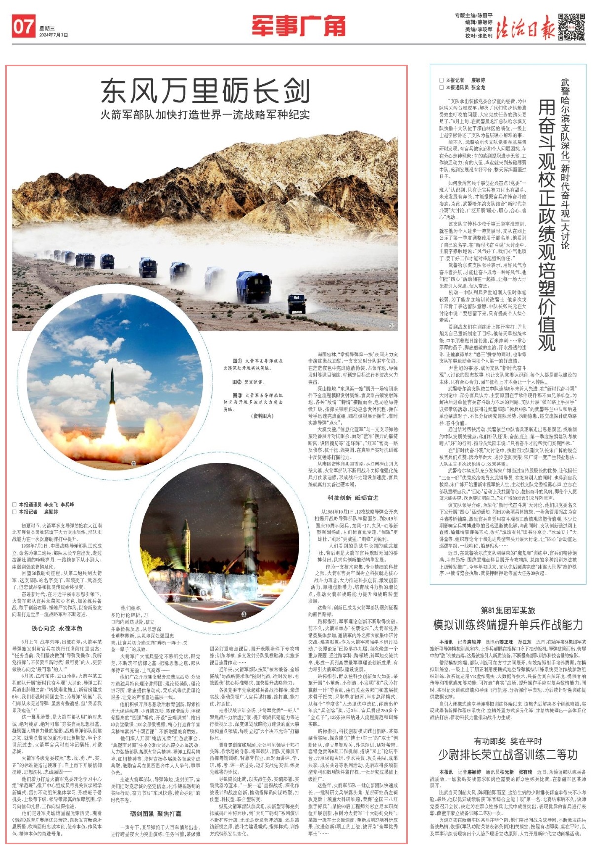 一聲令下,某導(dǎo)彈旅千人百車悄然出擊,進(jìn)行跨晝夜火力突擊演練;任務(wù)當(dāng)前,某保障團(tuán)緊盯重難點課目,展開極限條件下專攻精練;訓(xùn)練考核,多支發(fā)射分隊縱橫馳騁,實施多課目連貫作業(yè)……