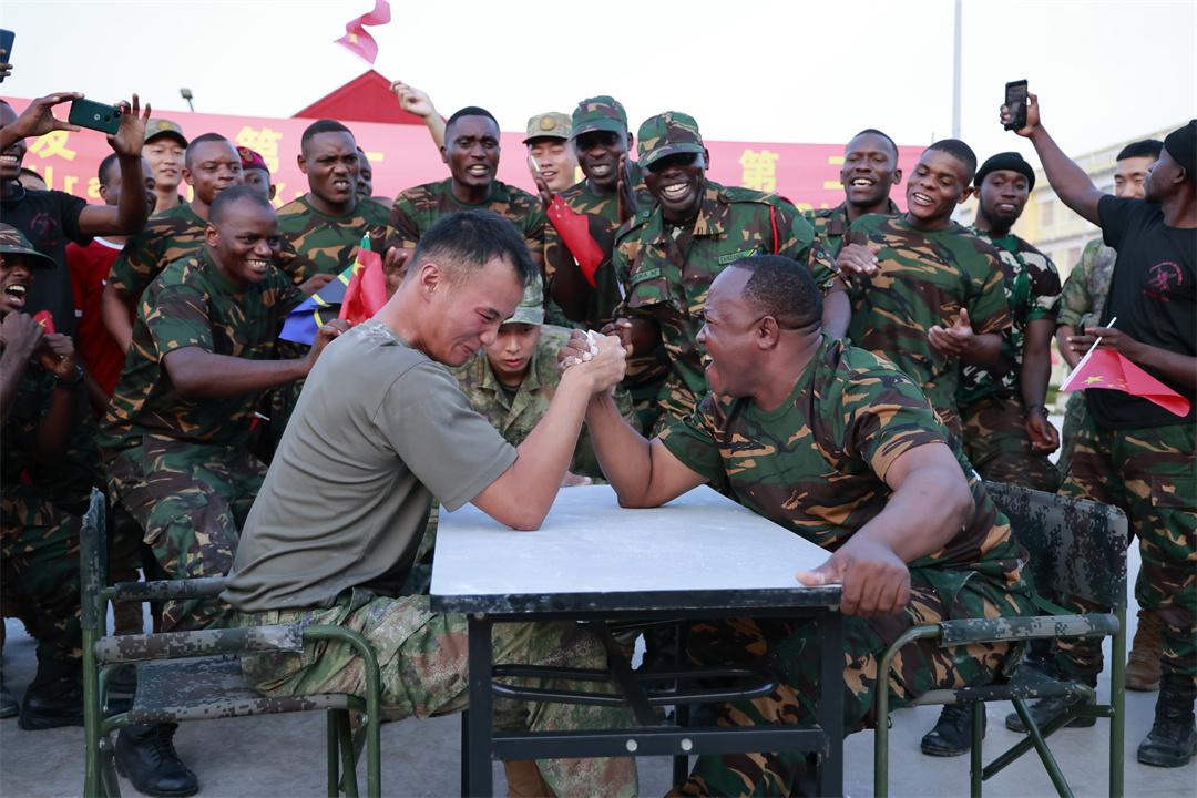 比賽結(jié)束后,雙方領(lǐng)導為優(yōu)勝團隊合影留念,兩國官兵遲遲不愿離場,又自發(fā)開展了軍體拳、捕俘拳等交流活動。大家仔細觀看,躍躍欲試,歡呼聲和加油聲此起彼伏,一浪蓋過一浪。中方官兵現(xiàn)場主動教學,將中華優(yōu)秀傳統(tǒng)文化介紹給坦方友人,大家在友好交流中不斷深化了解,在歡聲笑語間感受中華文化的獨特魅力。