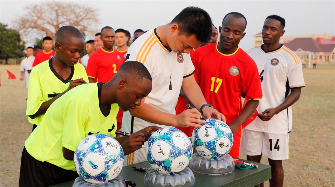 “加油!”“Come on!”8月4日,坦桑尼亞馬坪加綜合訓(xùn)練中心足球場(chǎng)上,“和平團(tuán)結(jié)-2024”聯(lián)合演習(xí)足球友誼賽拉開序幕,中坦官兵以球會(huì)友,共續(xù)中坦深厚友誼。
