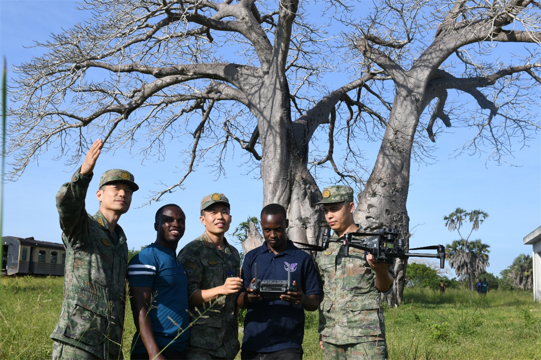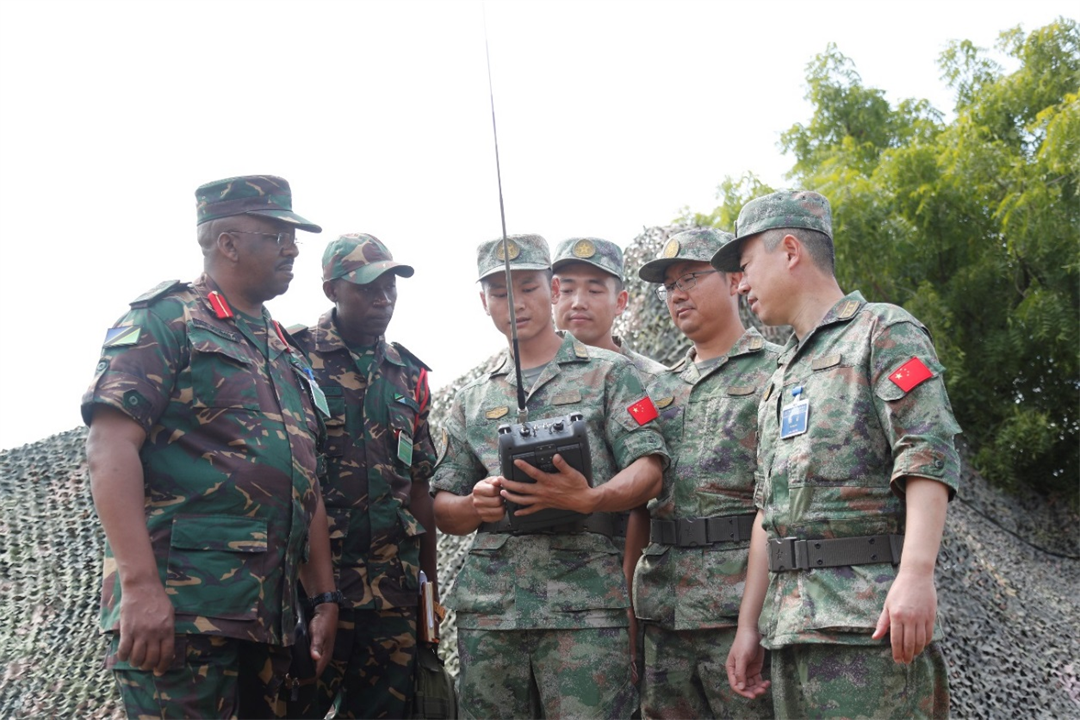 圖為中坦軍官兵進(jìn)行監(jiān)測(cè)技術(shù)交流。