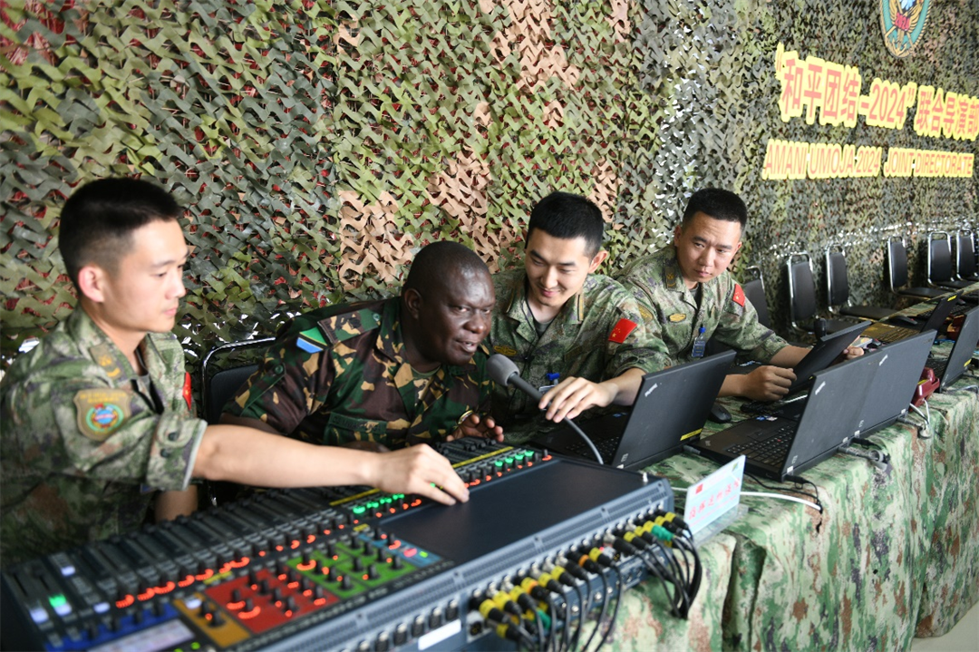 “Can you hear me?”“It sounds good!”近日,在中坦雙方后臺(tái)保障人員精心調(diào)試下,“和平團(tuán)結(jié)-2024”聯(lián)合演習(xí)導(dǎo)播控制系統(tǒng)建立完畢,各類(lèi)信息系統(tǒng)準(zhǔn)備就緒。