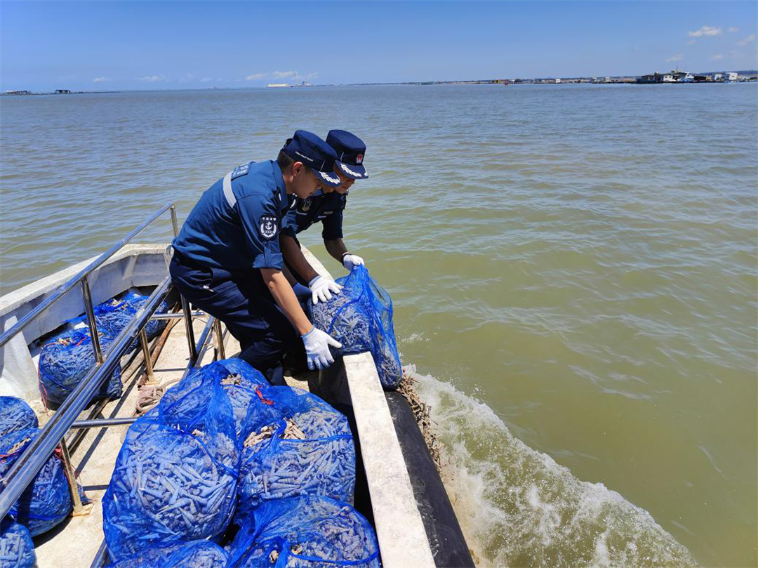 休漁期間,廣東海警局開展“粵海亮劍2024”伏季休漁專項執(zhí)法行動,聯(lián)合廣東省公安廳、廣東省海洋綜合執(zhí)法總隊等執(zhí)法部門加強海上執(zhí)法協(xié)作,推動海上綜合治理一體化建設(shè),聯(lián)合駐地檢察院、海洋綜合執(zhí)法等部門開展增殖放流、案例警示教育宣講等工作,不斷提高執(zhí)法和司法公信力。