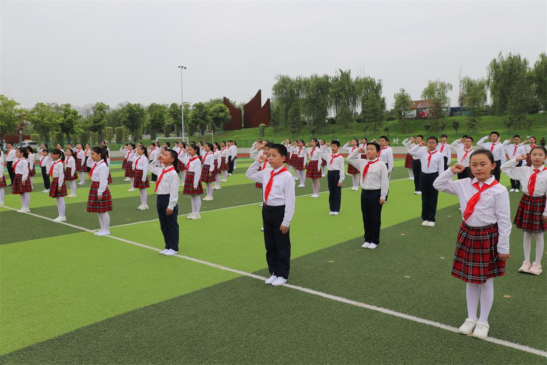 隨后,2023年度“紅領(lǐng)巾獎?wù)隆比珖逍钦芦@得者、五(8)中隊長楊天聰帶領(lǐng)全體隊員在國旗下立下誓言,要堅定不移聽黨話、跟黨走,用實際行動踐行愛國之志。