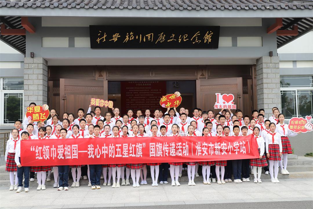 8月21日上午,“紅領(lǐng)巾愛祖國——我心中的五星紅旗”國旗傳遞活動來到江蘇省淮安市,在淮安市新安小學(xué)傳遞。少先隊校外輔導(dǎo)員、消防員代表陳新寬,淮安市、區(qū)少先隊總輔導(dǎo)員,新安小學(xué)少先隊大隊及中隊輔導(dǎo)員代表,以及新老五(8)中隊全體隊員逾百人共同參與了本次傳遞活動。