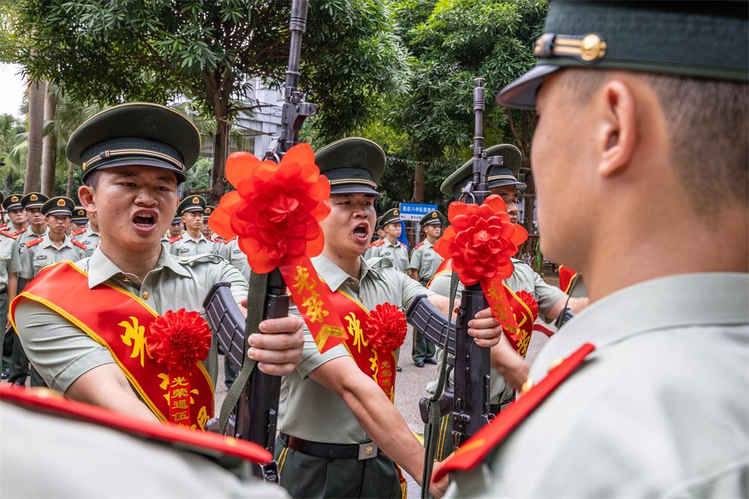 在該支隊(duì)某基層單位,一場(chǎng)熱鬧非凡的篝火晚會(huì)別開(kāi)生面,火光映照在他們剛毅的面龐上,官兵們手拉手圍著熊熊燃燒的篝火舞動(dòng)歌唱。薪火相傳,傳承的還有軍人的使命。在新老兵交接槍儀式上,退伍老兵們鄭重地把陪伴已久的武器交給剛下隊(duì)的新兵,勉勵(lì)他們刻苦磨煉本領(lǐng),早日成為單位建設(shè)骨干。