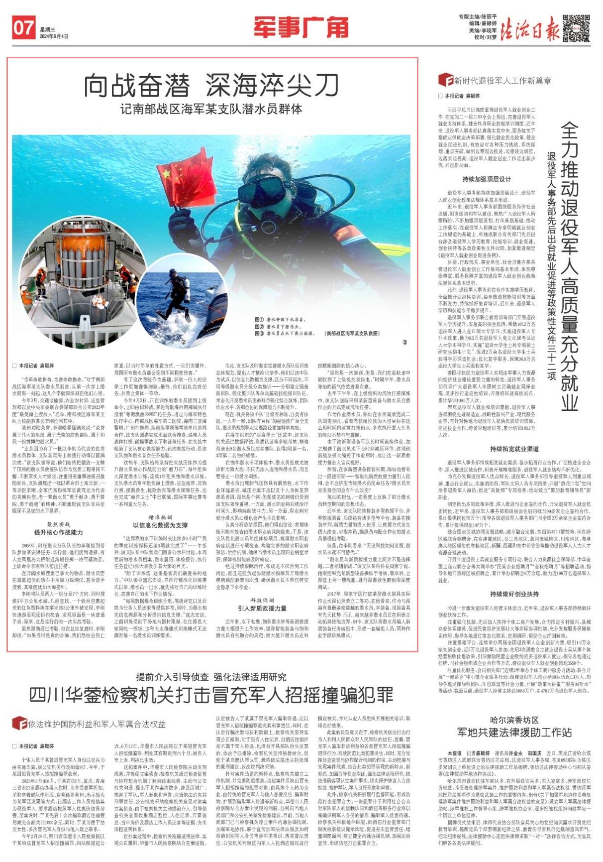 2017年,周家寧因打破某型潛水裝具實(shí)際作業(yè)水深記錄榮立二等功。在他看來,作為與深海有著最親密接觸的潛水員,學(xué)裝備、用裝備具有先天優(yōu)勢(shì),而且,越來越多潛水員正在積極主動(dòng)拓展技能邊界。如今,該支隊(duì)將潛水員編入新質(zhì)裝備任務(wù)編組中,形成一套編組人員、兩種作業(yè)手段訓(xùn)練模式。