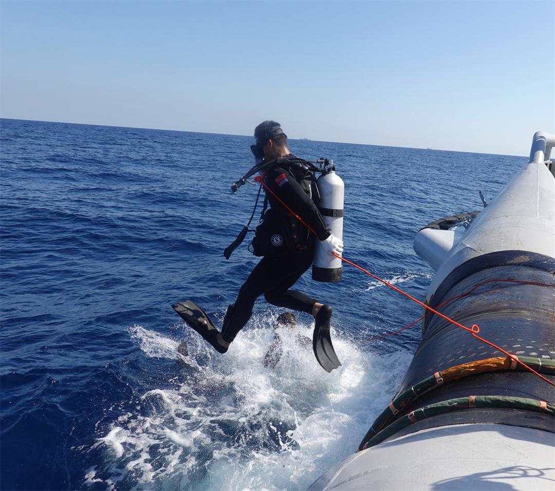 今年4月3日,正在訓(xùn)練的潛水員接到上級(jí)命令,立即由訓(xùn)轉(zhuǎn)戰(zhàn),奔赴鶯歌海西南海域執(zhí)行搜索“粵南澳漁36062”輪任務(wù)。通過與海軍特色醫(yī)療中心、南部戰(zhàn)區(qū)海軍第二醫(yī)院、海南三亞海警局、廣州打撈局、海南海事局等軍地單位協(xié)同合作,該支隊(duì)圓滿完成水面聯(lián)合搜索、遇難人員遺體打撈、碰撞事故水下取證等任務(wù),在實(shí)戰(zhàn)中檢驗(yàn)了支隊(duì)核心救援能力。此次救援行動(dòng),是該支隊(duì)飽和潛水首次任務(wù)檢驗(yàn)。