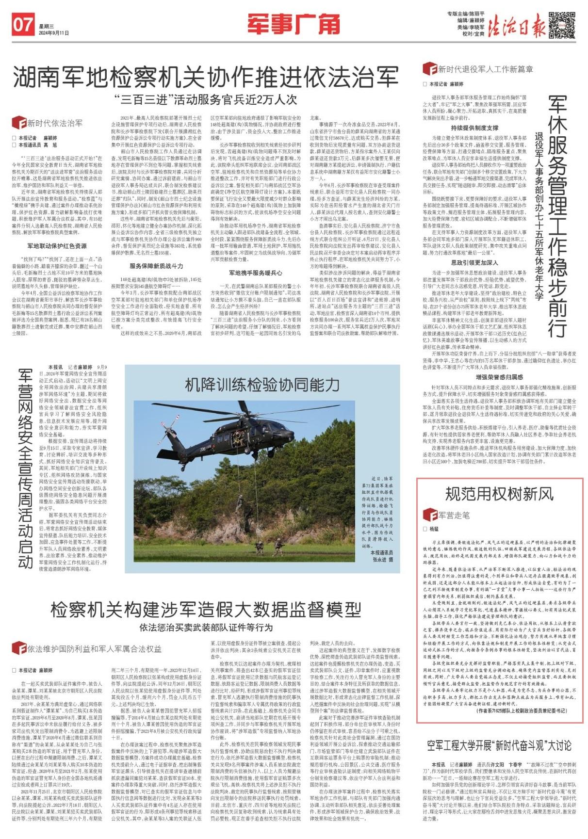 習(xí)主席強(qiáng)調(diào),要鍛造法紀(jì)嚴(yán)、風(fēng)氣正的過硬基層,以嚴(yán)明的法治和紀(jì)律凝聚鐵的意志、錘煉鐵的作風(fēng)、鍛造鐵的隊(duì)伍?;仡櫸臆娊ㄔO(shè)發(fā)展歷程,各級依法帶兵、規(guī)范用權(quán),始終是鞏固發(fā)展內(nèi)部關(guān)系,增強(qiáng)部隊(duì)凝聚力、向心力和戰(zhàn)斗力的助推器。