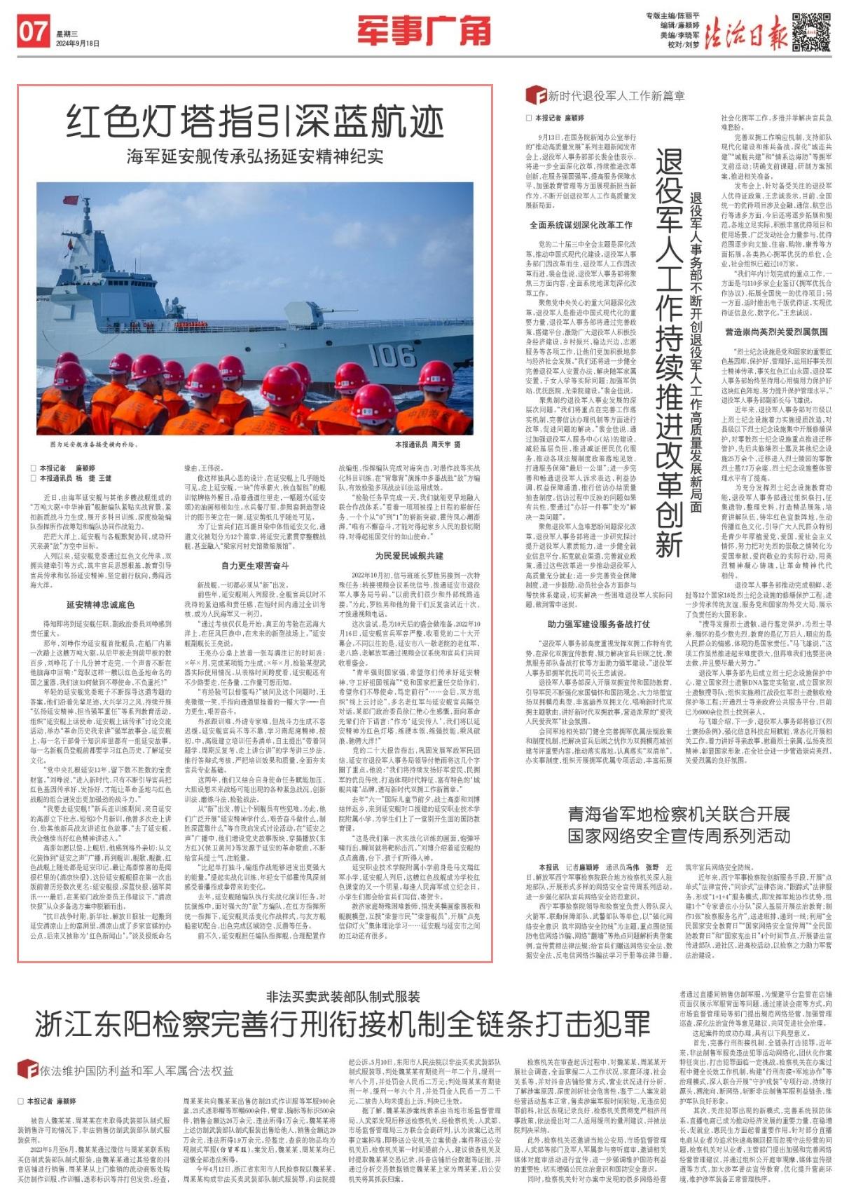 “青年強(qiáng)則國(guó)家強(qiáng),希望你們傳承好延安精神,守衛(wèi)好祖國(guó)領(lǐng)海”“黨和國(guó)家把重任交給你們,希望你們不辱使命、篤定前行”……會(huì)后,雙方組織“線上云討論”,多名老紅軍與延安艦官兵隔空對(duì)話。某部門(mén)政治委員徐仁艷心生感慨,面向革命先輩們?cè)S下諾言:“作為‘延安傳人’,我們將以延安精神為紅色燈塔,練硬本領(lǐng)、練強(qiáng)技能,乘風(fēng)破浪、馳騁大洋!”