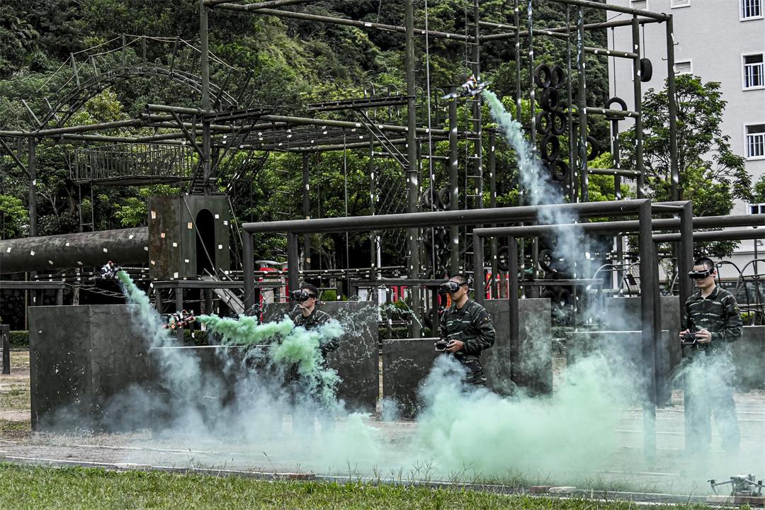 圖為官兵進行無人機課目演示。